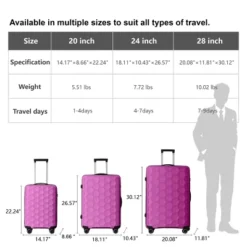 Syemin Luggage 3-Piece Luggage Set Travel Lightweight Suitcases With Rolling Wheels TSA Lock Carry On Luggage 20″/24″/28″, Pink, 20.08″*11.81″*30.12″