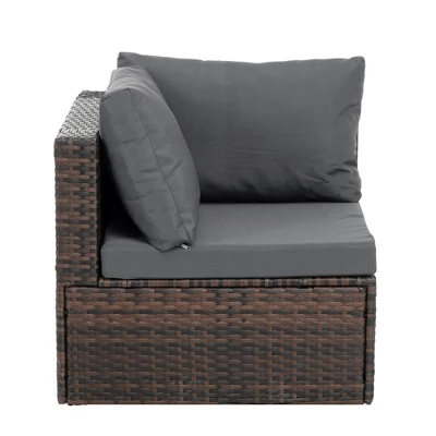 Syemin 5PCS Patio Seating Rattan Furniture Set Sectional Sofa Cushioned Garden, Tempered Glass Table, Grey, 28.94″*28.55″*24.8″