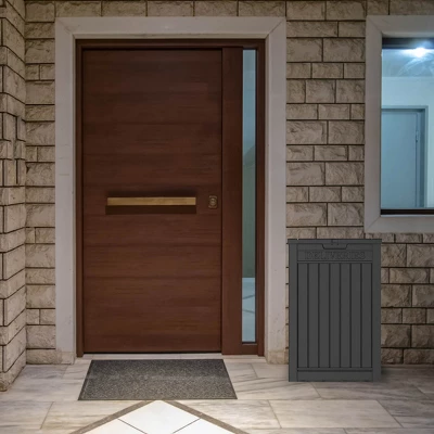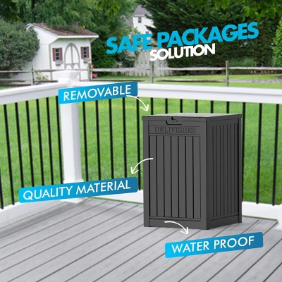 Syemin Deck Boxes lockable package delivery and storage box prevent porch theft with hidden, secure storage option (lock not included). Keep packages safe from thieves, weather, and animals. Large ft interior holds multiple deliveries, mail, food, laundry, and more. Durable construction with weather-resistant panels and shingled roof keeps contents dry. Versatile outdoor storage box for deliveries and more. Outdoor Living offers innovative, stylish furniture to create your dream outdoor space.