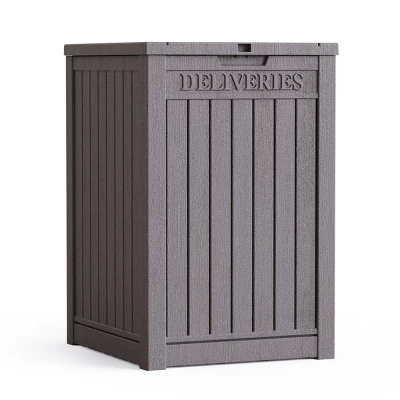 Syemin Deck Boxes lockable package delivery and storage box prevent porch theft with hidden, secure storage option (lock not included). Keep packages safe from thieves, weather, and animals. Large ft interior holds multiple deliveries, mail, food, laundry, and more. Durable construction with weather-resistant panels and shingled roof keeps contents dry. Versatile outdoor storage box for deliveries and more. Outdoor Living offers innovative, stylish furniture to create your dream outdoor space.