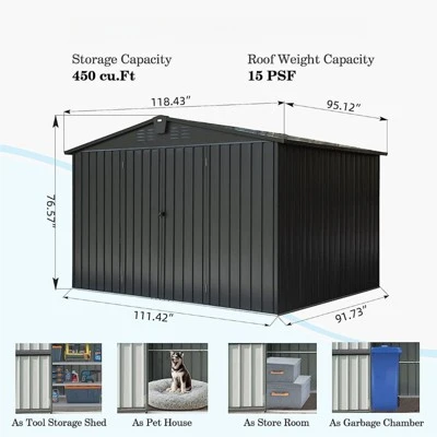 Syemin Deck Boxes Durable, Horizontal Compact Storage Shed For Garden, Backyard, Patio, Closet Deck Box, Black, 118.43″*95.12″*76.57″