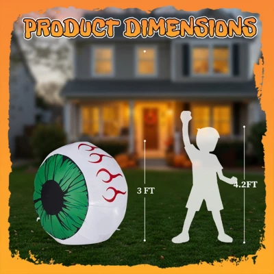 - Quick Inflation Easy to Use: The 3 FT Halloween inflatable eyeballs feature 2 pieces which meaning that you can place it anywhere in your garden, lawn, or yard.