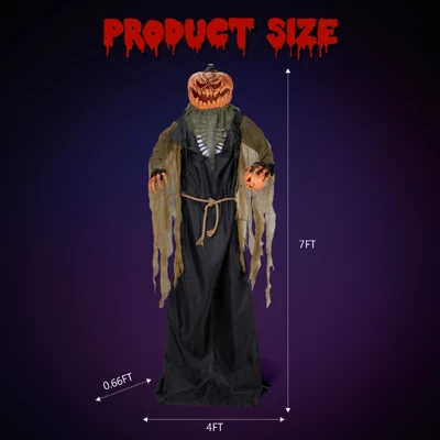 Syemin Decorative Holiday Scene Props The inflatabledecortation will be one of the best photo spots for Halloween. Just take pictures and create your own Halloween memories. It will attract trick-or-treating kids and fill your yard with a hot holiday vibe. Made of high quality materials with fine workmanship, our Halloween pumpkin inflatable decoration permits a long service life. With built-in blower, inflation will be a breeze.