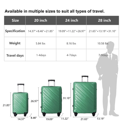 - Impact-Resistant Hardshell: Made from premium ABS+PC, this luggage set resists scratches and dents, protecting your items trip after trip.