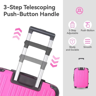 Syemin Luggage The adjustable telescopic handle has three height settings, while the 360 degree silent dual wheels ensure smooth and effortless maneuverability. With this ergonomic, expandable, soft-sided checked luggage with an ample amount of storage and all the organizational aids that you need. Built with maximum maneuverability in mind, so you can navigate busy airports and small spaces with ease: top, side and bottom handles make carrying your suitcase easy.