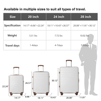 - Expandable Capacity: 24in and 28in luggages can expand for 20% more capacity. The 20in carry-on luggage is approved by airlines. It fits most airline overhead compartments and can be carried onto the airplane.
