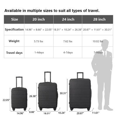 - Durable Material Protection: Crafted with PC+ABS composite material, the luggage combines practicality and lightweight design. Even in violent transportation at the airport, the shape can remain stable, the surface is anti-scratch, and the durability is comprehensively improved.