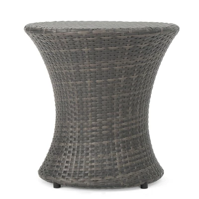 The Syemin patio end table combines modern design, versatility for indoor and outdoor use, no assembly convenience, handcrafted uniqueness, and a space saving footprint. It features an elegant cut design frame and is ready to use right out of the box.