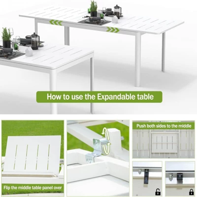 Syemin Patio End Tables Rectangular Outdoor Coffee Table,Modern Industrial Style,for Spaces Patio House Balcony,White,94.49″*35.43″*29.92″