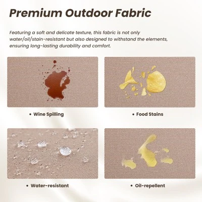 - Low-Maintenance Fabric: The fabric is water-resistant, stain-resistant, and oil-resistant, keeping cushions dry and fresh. Cleaning is a breeze, making it ideal for outdoor use in various conditions.
