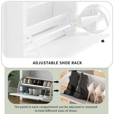 Syemin Shoe Racks tired of wasting time searching for your keys. You can put them on the top of the cabinet for reach. This slim shoe cabinet comes with an open shelf to providing additional display and storage space. The bottom space can store slippers and boots. The hidden shoe rack incorporates a space-saving flip drawer design, which offers greater convenience for opening and closing.