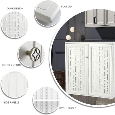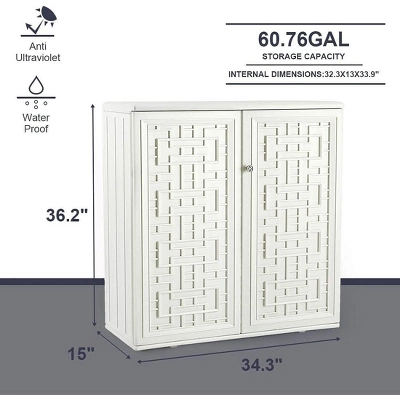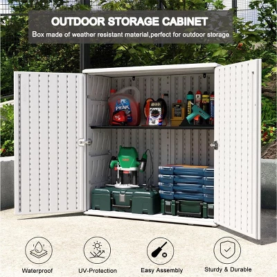Syemin Storage Shed, Waterproof Storage Shed, Double Shelves For Cleaning Tools And Garden Accessories, White, 34.3″*15″*36.2″