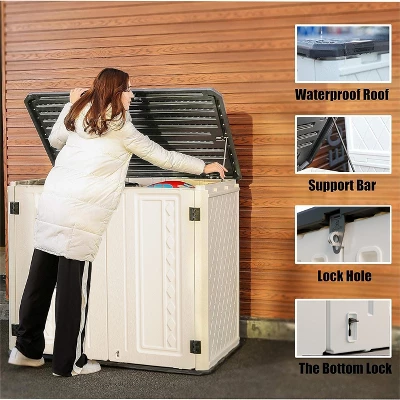• Waterproof: The shed features a waterproof design that keeps your stored items dry and protected from rain. This ensures your garden accessories and trash cans remain in excellent condition.