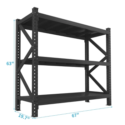 - Triple-Reinforced: Our garage shelving includes reinforced diagonal braces, which help distribute weight evenly across the entire structure. Each shelf is made from thick, high-quality steel and features reinforcing ribs for added strength. Additionally, the upright columns are secured with premium screws, providing a solid and reliable connection.